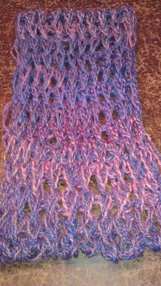 Selon un modèle qui circule bien, très amusant à fabriquer puisqu'on tricote avec les mains !